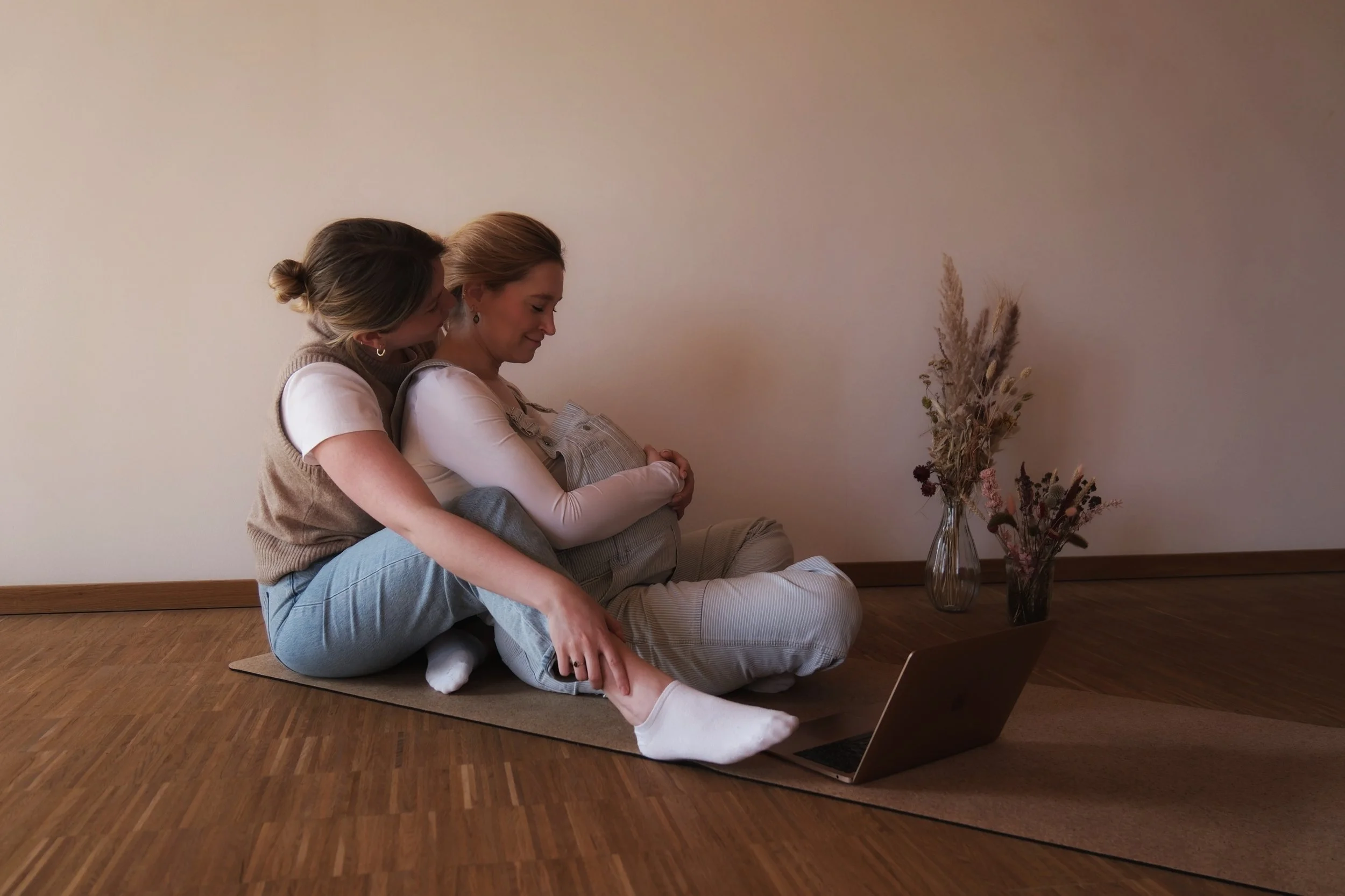 Einmal monatlich gebe ich einen kompakten Online-Geburtsvorbereitungskurs an einem Wochenende. Wir treffen uns an einem Freitag von 16-20Uhr und an dem folgenden Samstag von 10-14Uhr LIVE in einem geschützten digitalen Raum. So habt ihr Zeit all Eure Fragen zu stellen und wir gestalten den Kurs, entlang meines Leitfadens, gemeinsam.